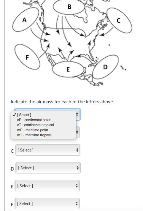 Solved B A F E D Indicate The Air Mass For Each Of The Chegg Com
